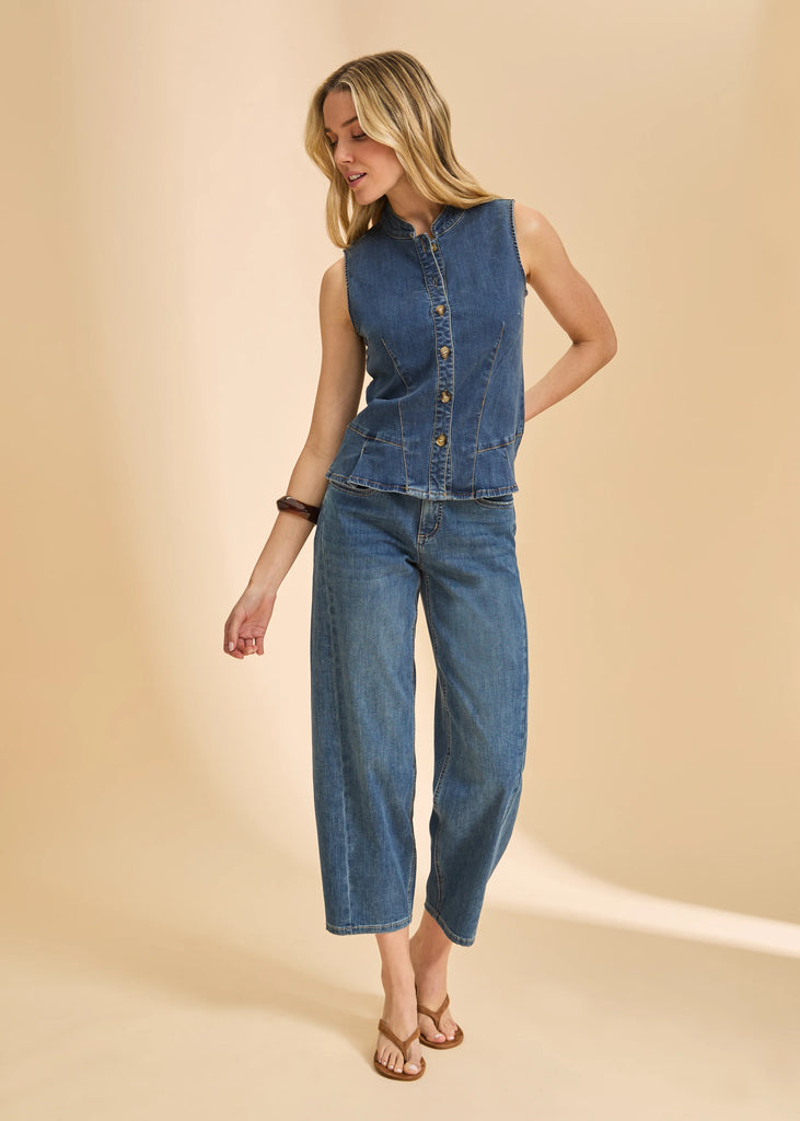 The Girlfriend Barrel Jeans sit at the mid-waist and stay there. There's no tugging, no adjusting. The barrel shape gives your thighs room to breathe while the ankle length shows off your shoes. Stretch that actually recovers, and pockets deep enough for your phone.
