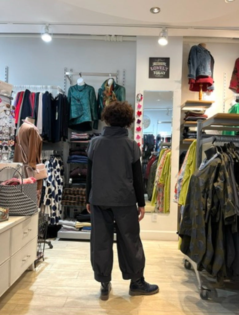 The Bryn Walker Essential Tunic has cap sleeves with a cowl neckline. It is made of the popular Shimmery Bryn Walker memory crunch fabric. It has a boxy fit with a 2 way zipper down the front.