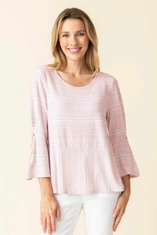 The Habitat Pleated Sleeve Swing Top is made in a subtle texture in soft blended tones. It features a scooped neckline with pleated sleeves and a slight swing shape adding a feminine touch.