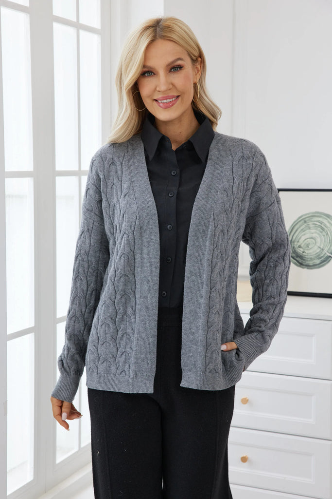 Orange by Fashion Village, 830 Cable Knit Cardigan, Grey