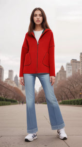 The Orange by Fashion Village Short Swing Jacket is made in a super cozy boiled wool. It features a large hood with 2 large front patch pockets. It is shorter in length and has a full length front zipper. The perfect transition jacket.