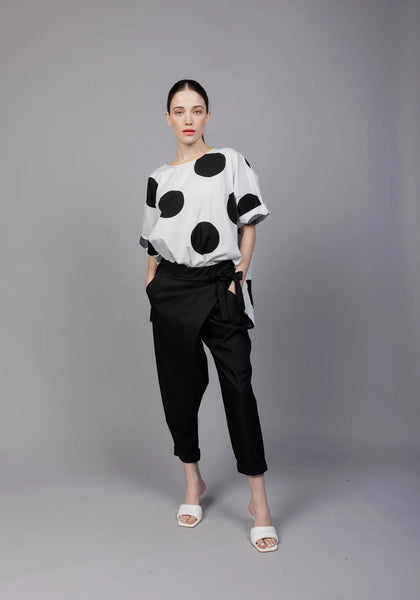 Paolo Tricot, SU6201 Cross Over Pant with Tie, Black