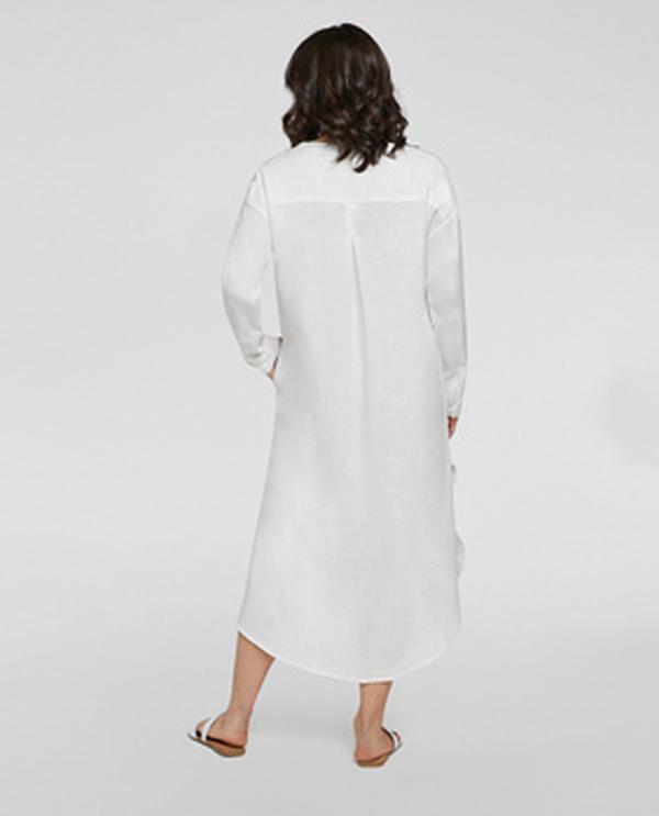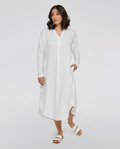 The Sympli Mandarin Collar Tunic & Dress is the perfect piece this summer. This easy-breezy blouse has side pockets and is long to the ankle so it can be worn as a dress or a long shirt over pants. Beautiful v-neck mandarin collar, side slits, and buttons all the way down are perfect for a beach day! Presenting Sympli's new 100% Linen Collection. This exciting addition is natural, light, and airy in a luxurious pre-washed Linen fabrication.