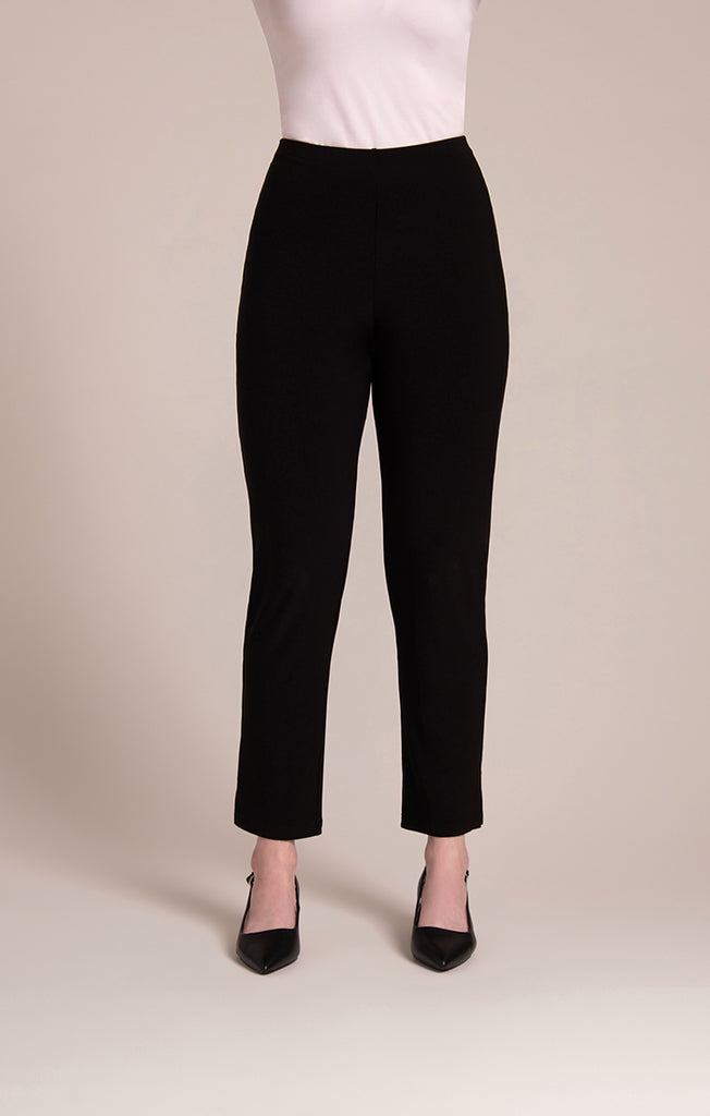 Sympli's Narrow Pant Midi is a narrow, slim fit pant with small side slits at the ankle. In Sympli's signature jersey fabric, this pull-on pant is both stylish and comfortable, and the wrinkle-free fabric is perfect for travel!
